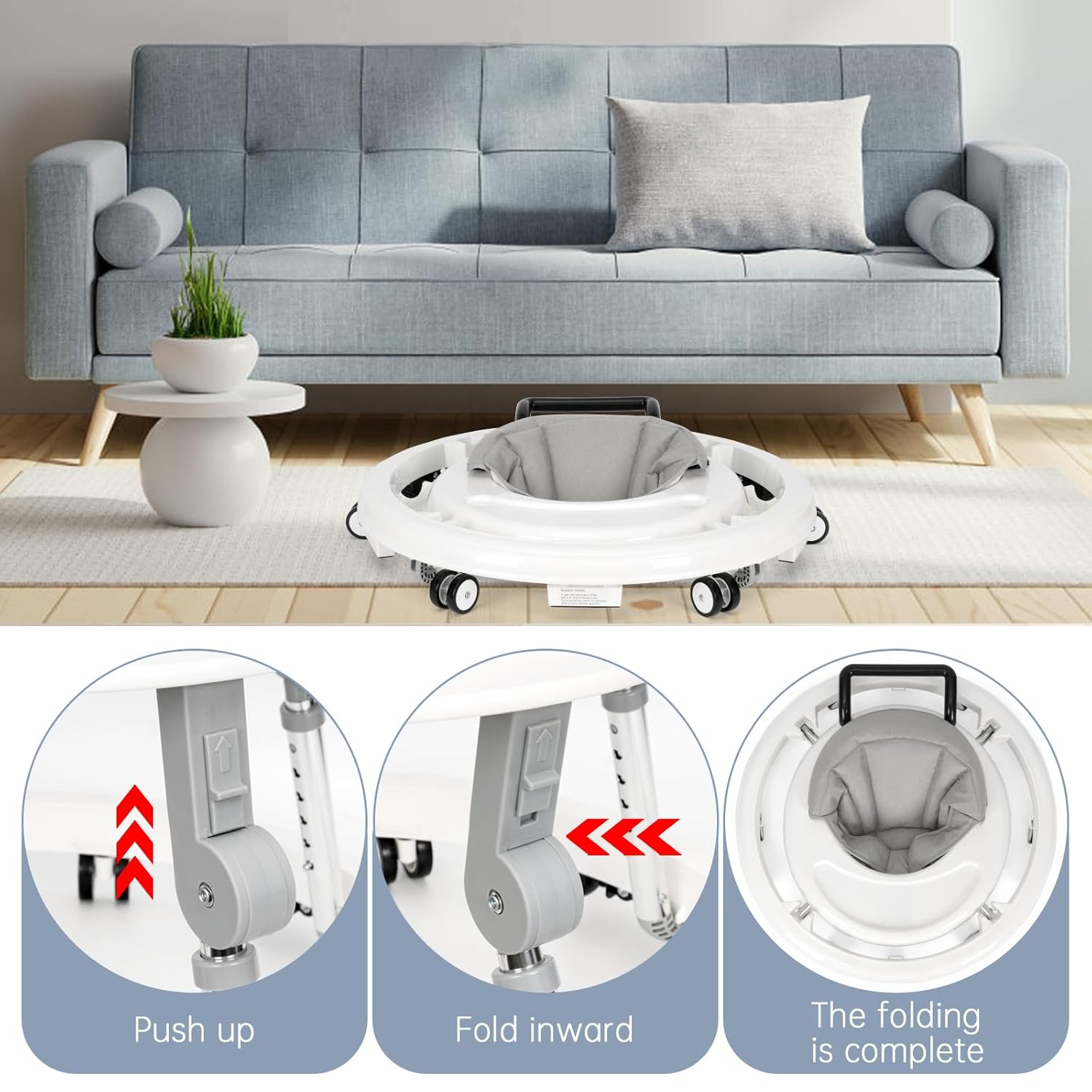 The foldable frame of the EasyBaby Walker™ allows for quick collapsing into a slim form—perfect for compact storage or travel. Spend less time stashing it away and more time enjoying your little one’s milestones.